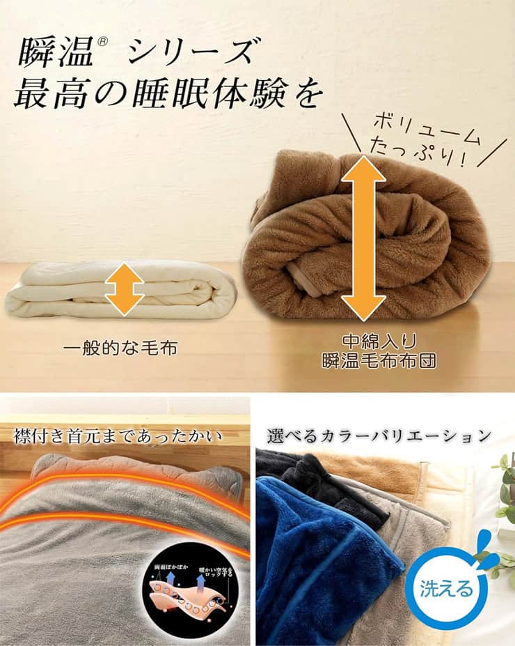 重ね掛けをしなくても、毛布一枚でしっかり暖かさを感じたい人にとって、頼もしい設計です。