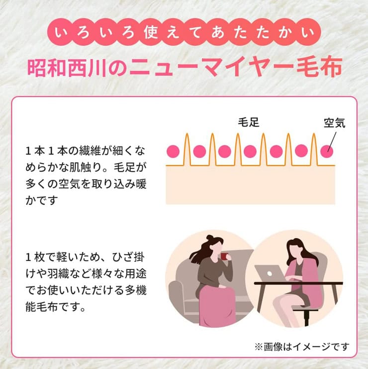 ニューマイヤー毛布の魅力は、触れた瞬間に分かることが多いです。