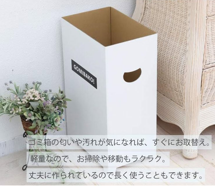 「ダンボール ゴミ箱 3個セット 45リットル袋対応 段ボール箱 DG01-0003」は、45L袋に対応する使い勝手のよさと、軽くて扱いやすい段ボール素材で、日常からイベントまで幅広く活躍します。