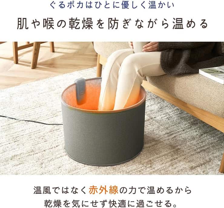 「仕事部屋の空気を変えたくない」「静けさを保ったまま温まりたい」という人も少なくありません。ぐるポカは、風を出さず空気を動かさないため乾燥を悪化させず、湿度・静けさ・集中力を保ちながら足元だけを心地よく温めてくれます。音もほとんど気にならないため、深夜の作業や家族が寝ている時間帯にも使いやすい特性があります。