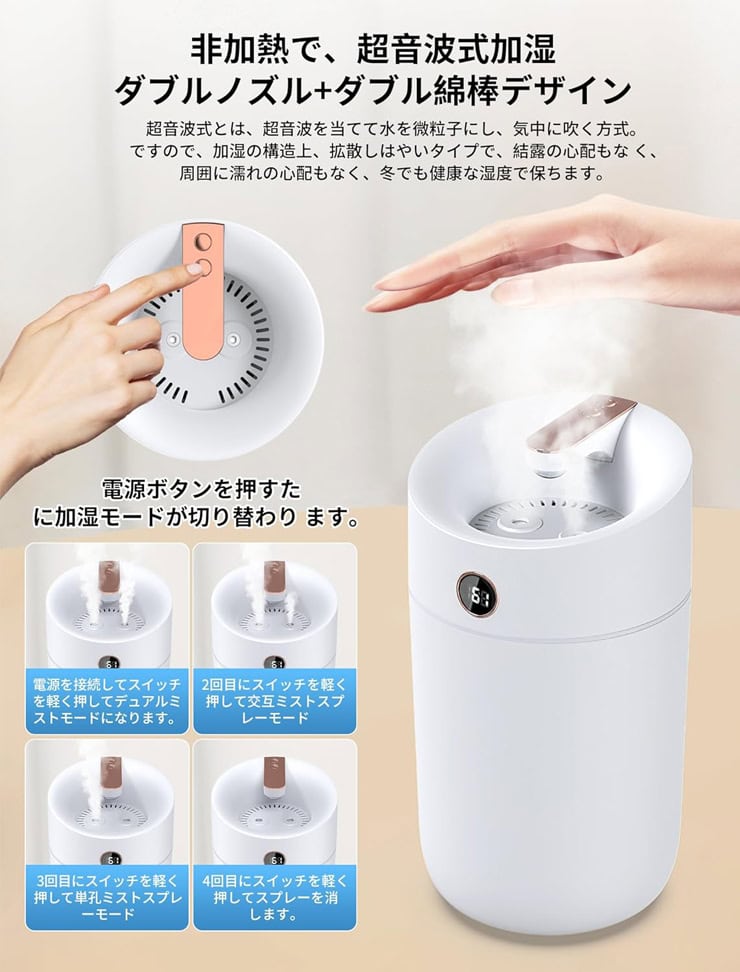 加湿方式は超音波式。