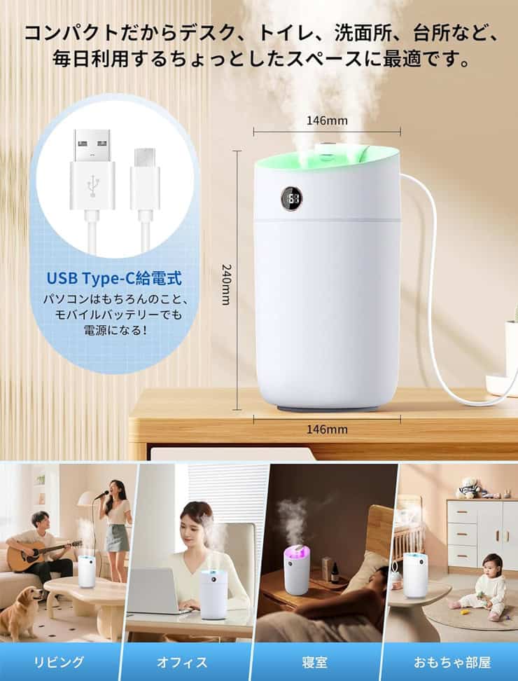そんなとき、静かに空気を整えてくれる存在として迎えたいのが、Favorealの卓上加湿器です。