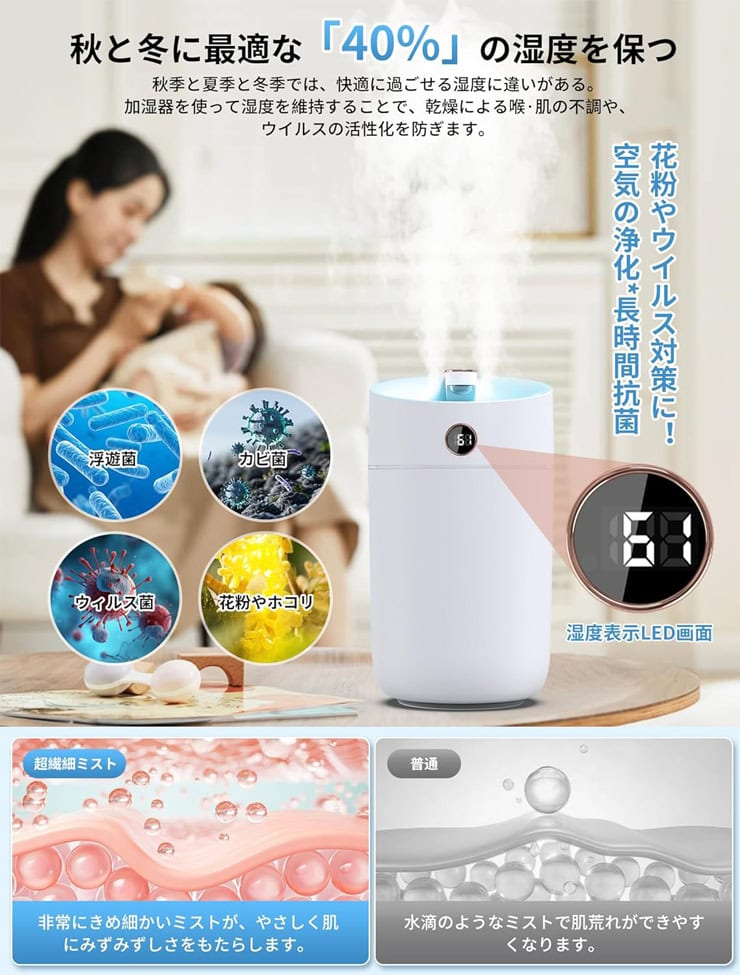 乾燥が気になる季節のリビングや個室に