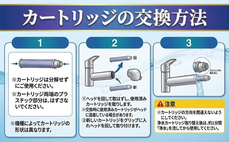 この浄水カートリッジの魅力は、いま使っている環境を変えずに交換できること。
