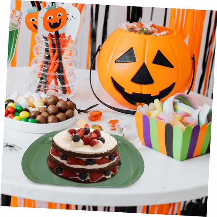 ・演出:中央に黒のランナーやミニパンプキン装飾を加えるとより雰囲気がアップします。