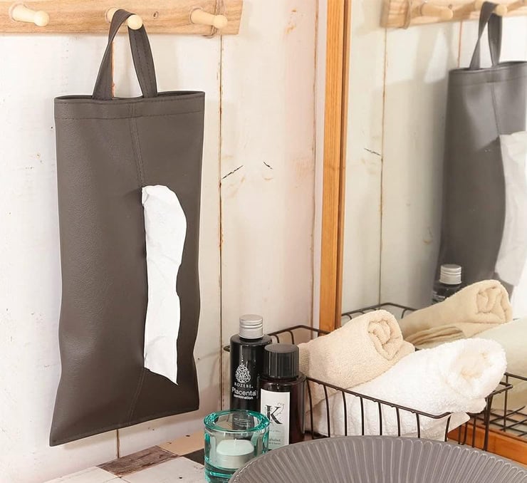 抗菌・撥水仕様で清潔に長く使え、吊り下げ・置き・掛けと自由に使える多機能ティッシュケースです。