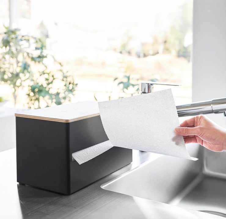 • 大判ロール対応:ロール直径15cm・幅28cm以内のサイズに対応しており、海外製または大巻きタイプのキッチンペーパーも使用可能。