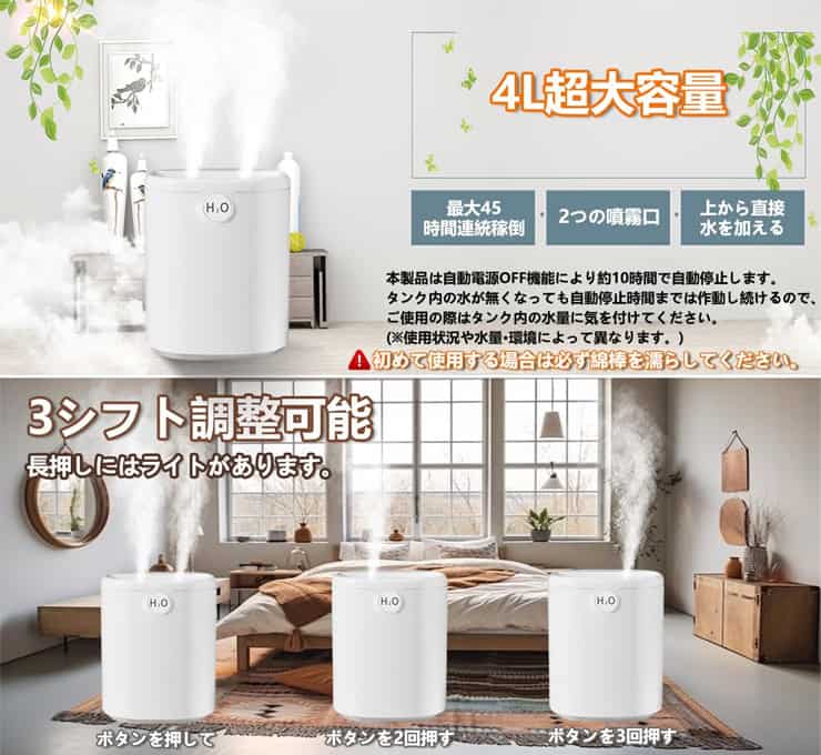 LQYLNBAIGの加湿器は4Lの大容量。